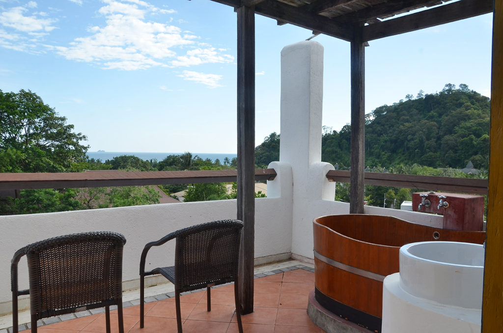 The uniqueness of this loft suite that I love so much is the small loft above the room, giving you a small living space (with a Thai day bed) and the loft also opens out to a larger balcony which sits what I would consider the highlight of the room – a classical wooden bathtub which gives you a panaromic view of the area.