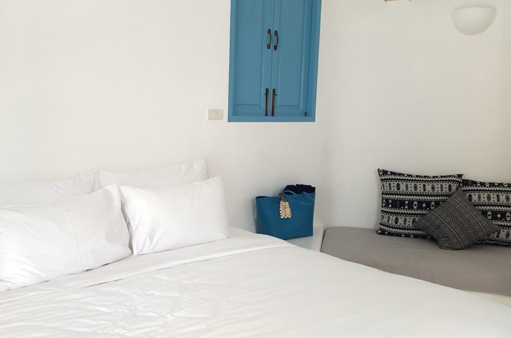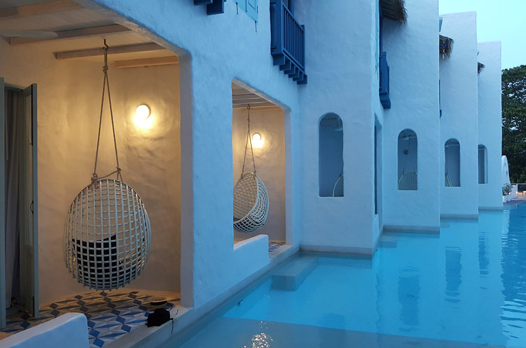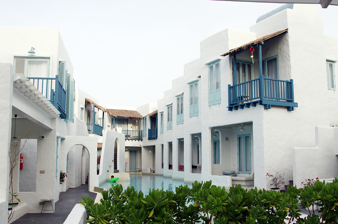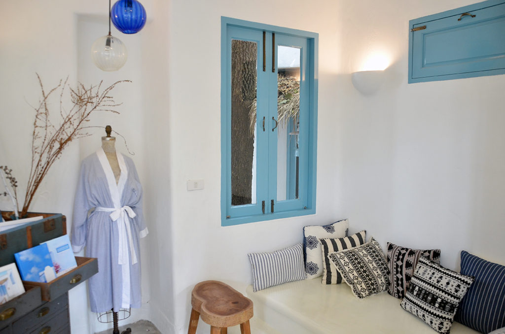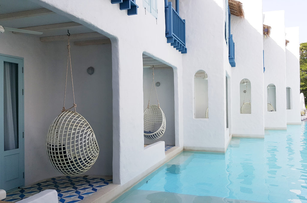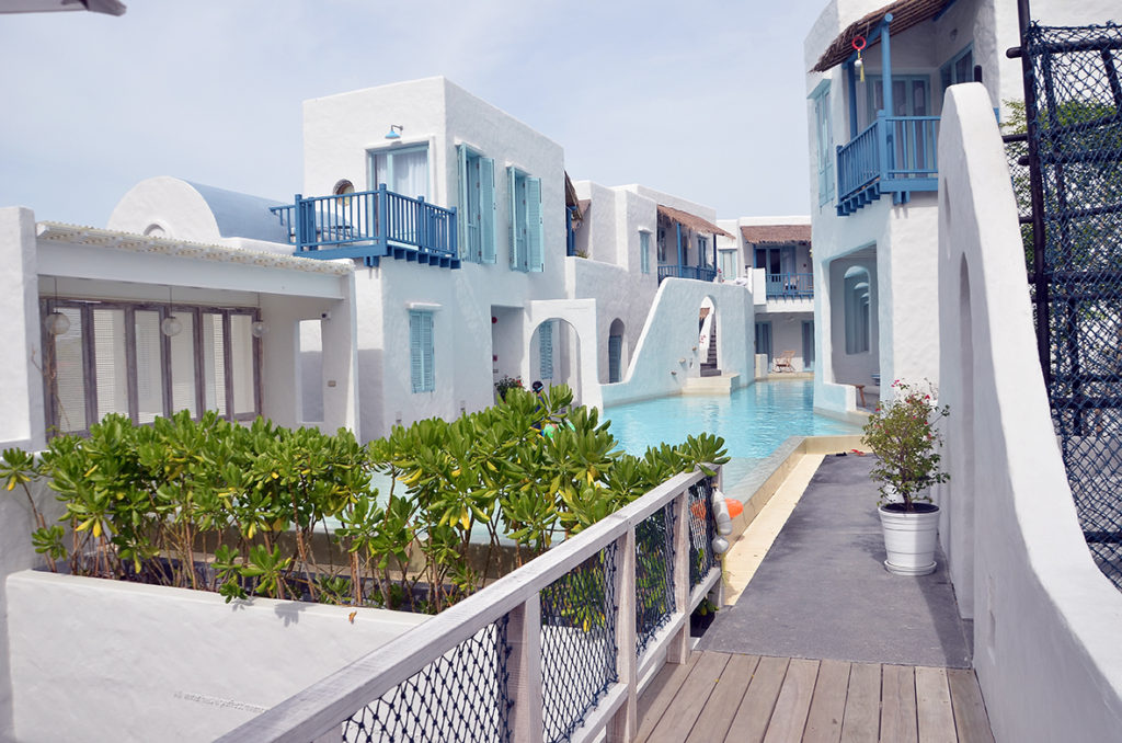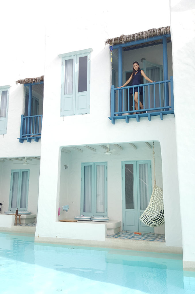 Resort de Paskani was definitely one of the resort we enjoyed staying during our visit to Hua Hin. A small boutique resort nearby the Khao Takiab beach, Resort de Paskani is a Santorini-themed hotel with just a little less than 40 rooms. This white-washed resort with turquoise window frames and door has rooms on two floors, the pool level floor which rooms opens up to the pool and the upper floor with rooms having a lovely balcony overlooking the pool. There are also some rooms in the old wing as together with a smaller but must quieter swimming pool.