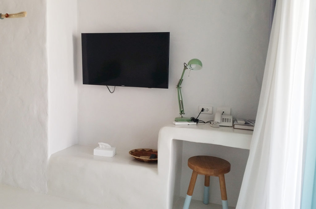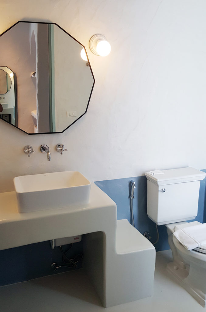 We had the opportunity to stay in the pool access room as well as the balcony room and I would say it is one of the nicest hotel we come across. The rooms are not overly huge ~ would say in the range of high 20 sqm, simple with furniture build out from concrete. Walls and flooring are white painted concrete with turquoise painted doors and window frames.