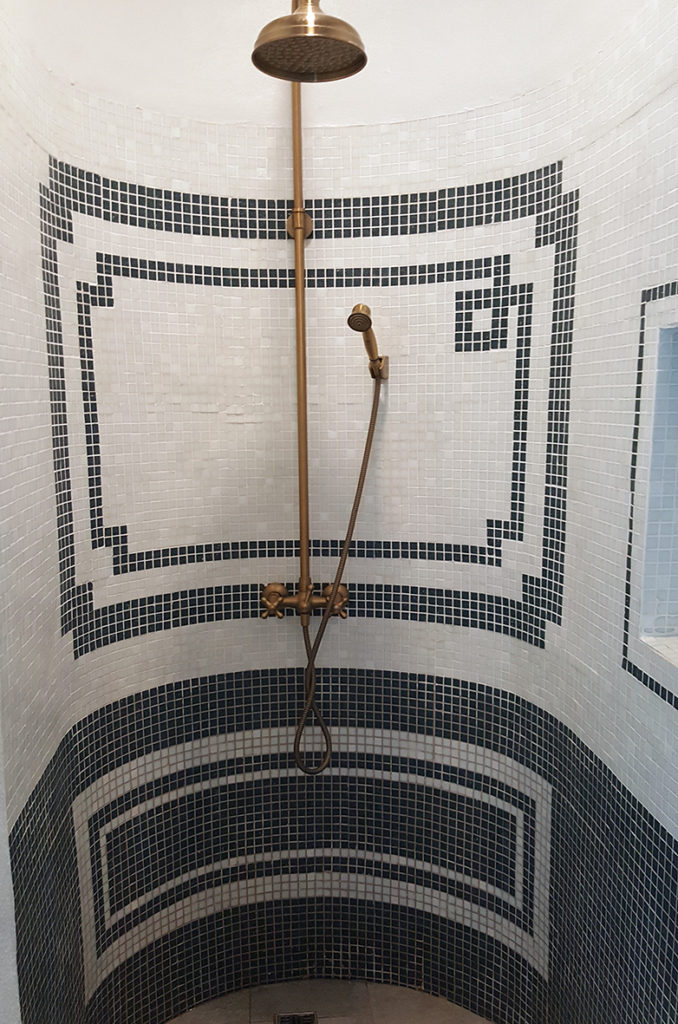 The bathroom is of good size and comes with a lovely brass-head rain shower.