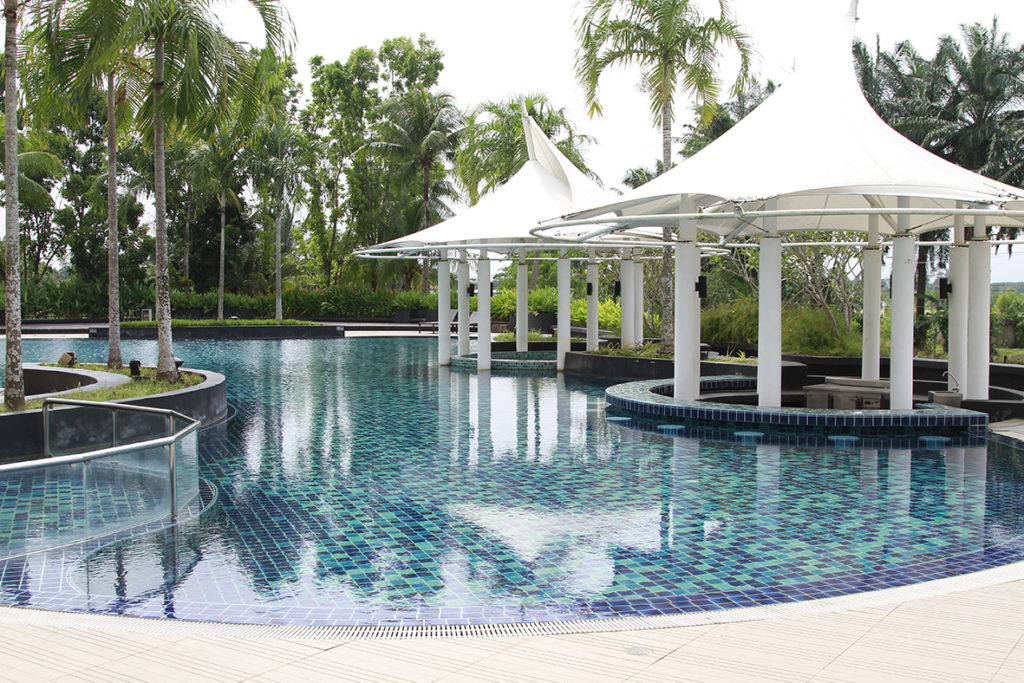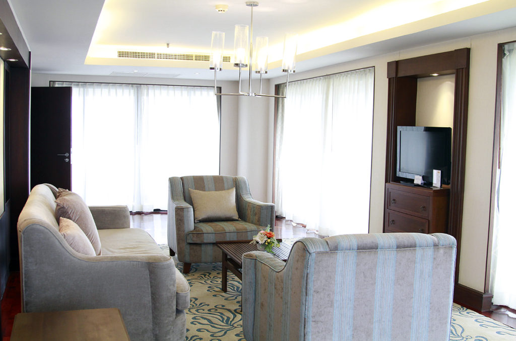 The first room we went was the 43 sqm Corner Deluxe Room which also comes with a nice balcony overlooking the greens of Trang. The room is spacious and comes in a calm soft pastel-grey tone and the bathroom comes with a nice soaking tub.