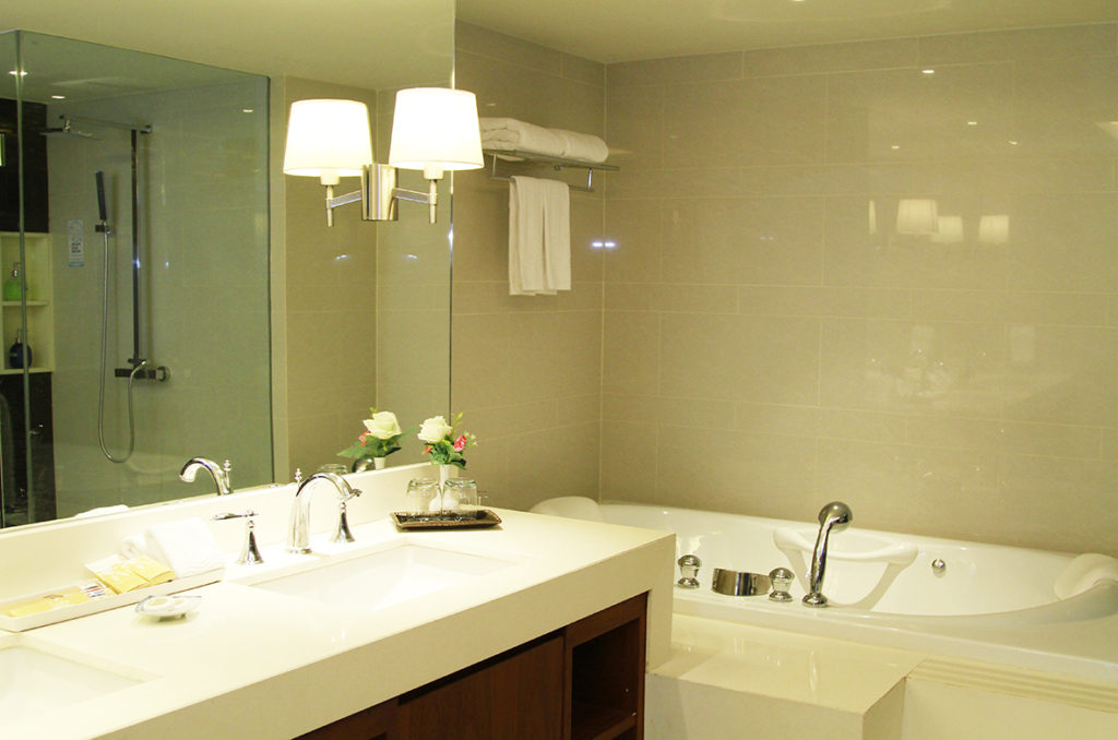 The second room type that we visit is the 50 sqm mountain-view Executive Suite which comes with a living and working hall and the bedroom and it also comes with a lovely soaking tub alongside with a standing shower.
