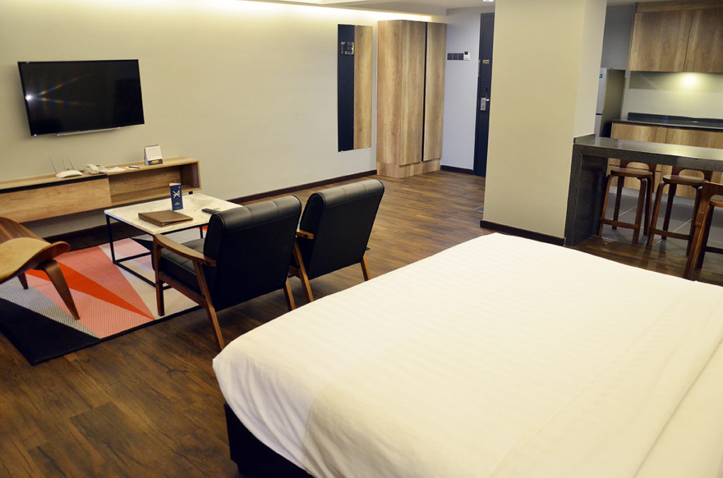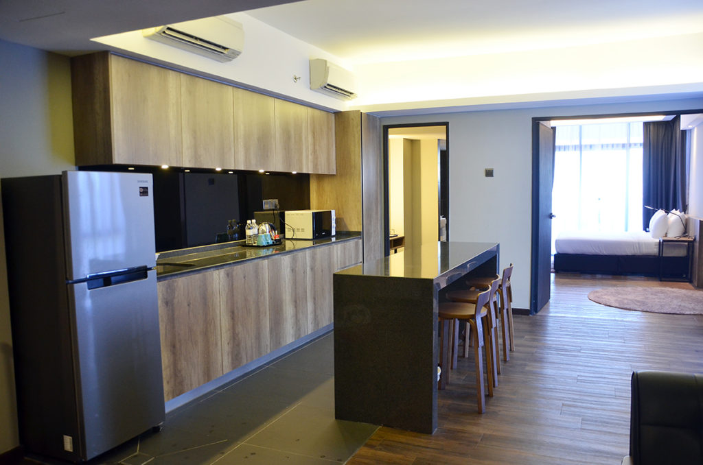 For those who does not wish for such big space, Tropics Eight Suites has the Studio Suite which is still large by comparison to most hotel at 47 sqm. In this Studio Suite, the king-size bed is located at the living area and adjacent to it is the kichenette and there is also a small room where the work desk is.