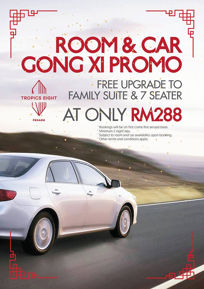 Tropics Eight Suites runs a few partnership promotions ~ one was mentioned earlier with GRAB and another is with New Bob Rent-A-Car. If you are flying into Penang ~ you can always opt for their Stay with Car Rental promotions at just RM 288 for a Family Suite and a 7-seater MPV rental for you to move around Penang.