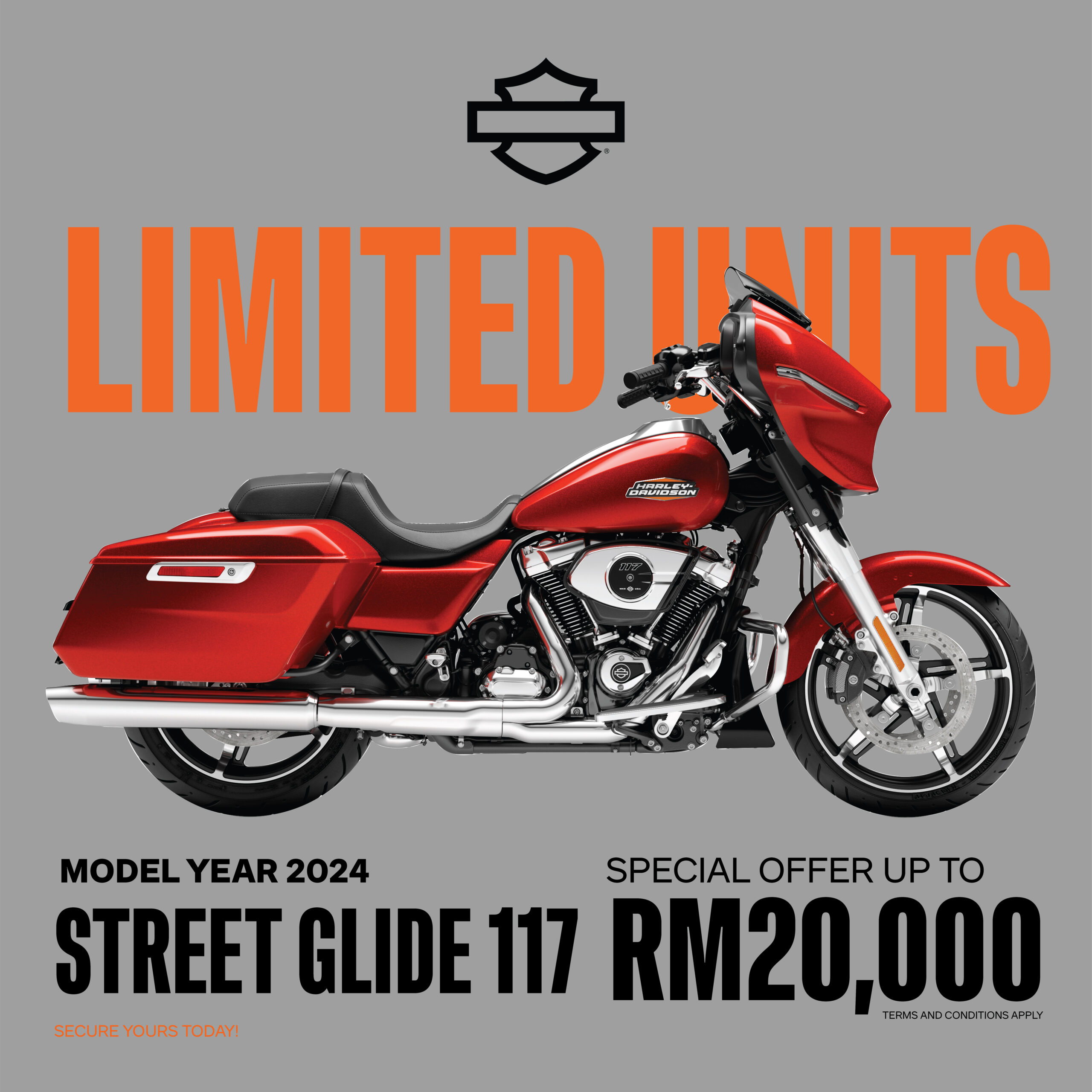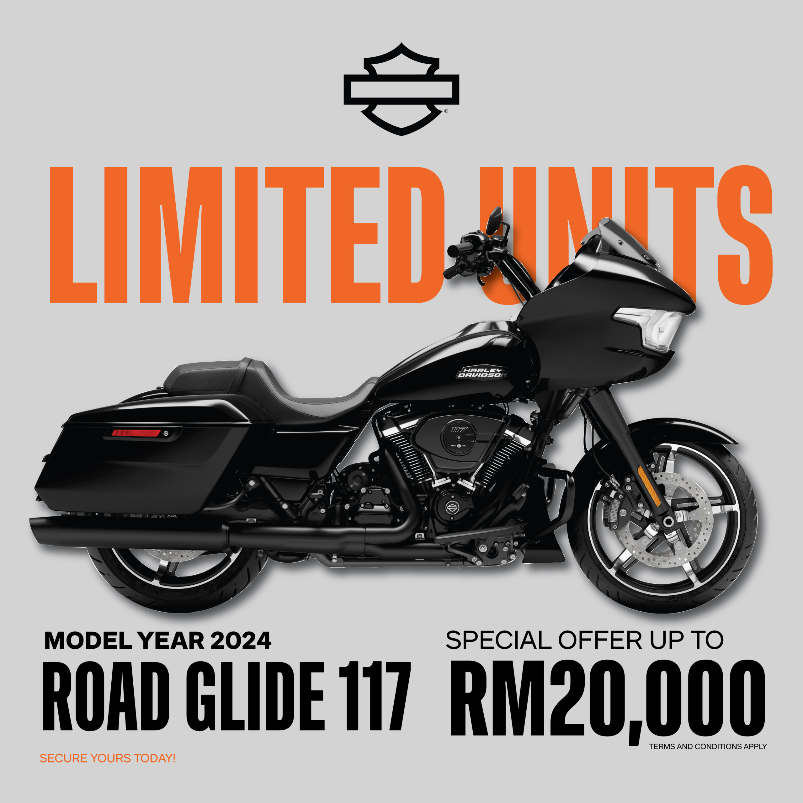 From now until 30 April 2025, customers can enjoy exclusive offers worth up to RM20,000 with the purchase of any Model Year 2024 Road Glide 117 or Street Glide 117.