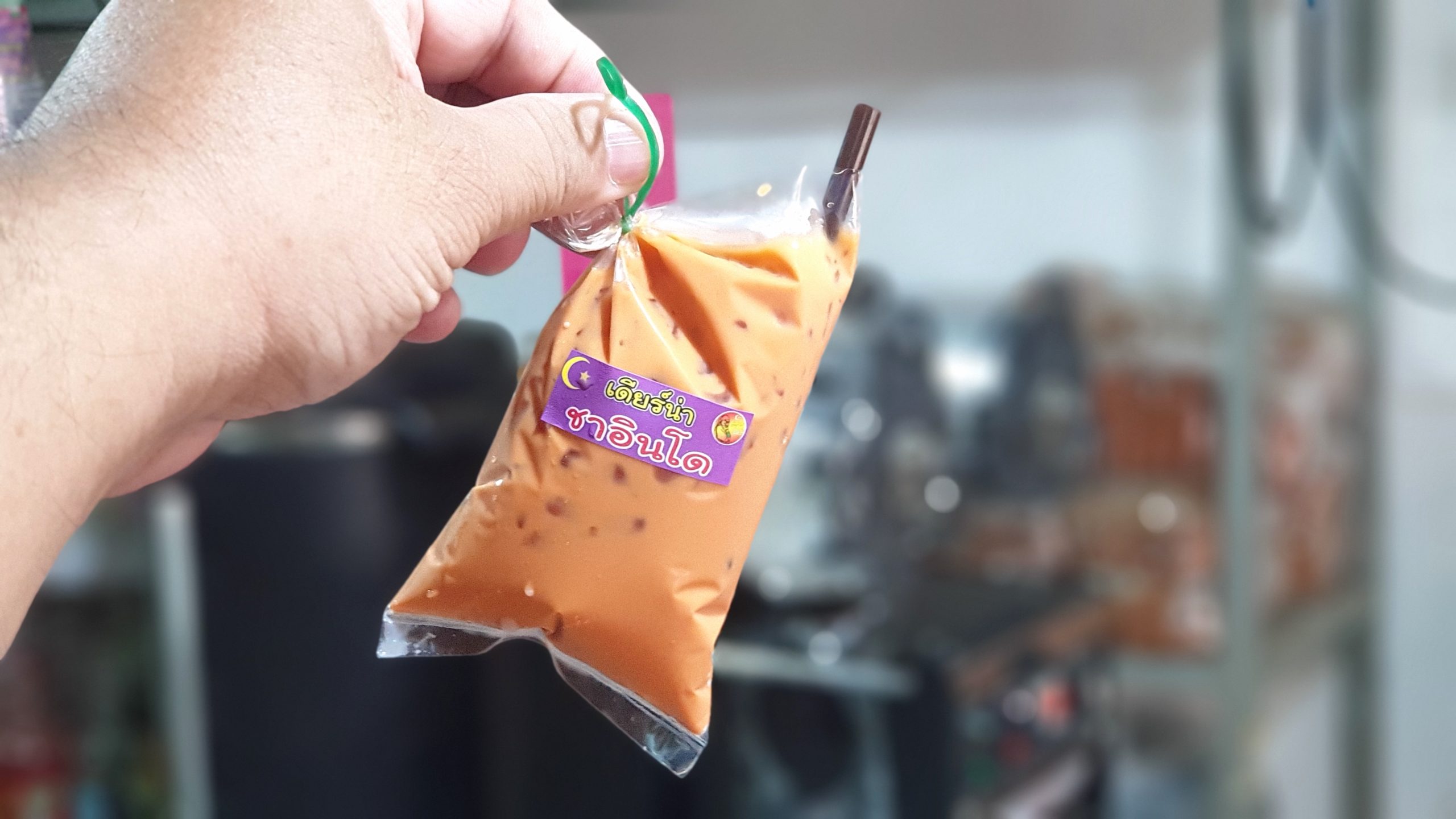 Business environment are tough these days, so entrepreneurs have to keep coming up with new ideas and new products to keep afloat. This small entrepreneur in Hatyai came up with these cute take away drinks for only 5 baht per pack – yes you heard it right .. 5 baht per pack.