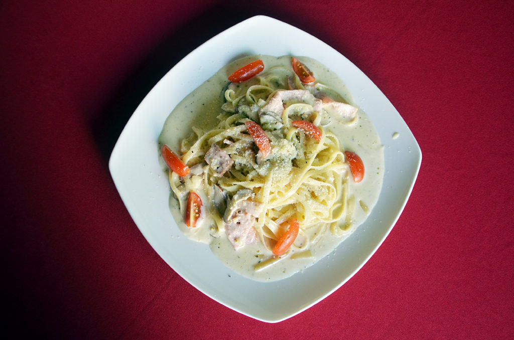 One of us had their creamy Fettuccine Carbonara with Iced Mocca … the fettuccine was cooked perfectly and mixed with a creamy carbonara sauce cooked with fresh mushrooms, turkey ham topped with parmesan cheese and cherry tomatoes.