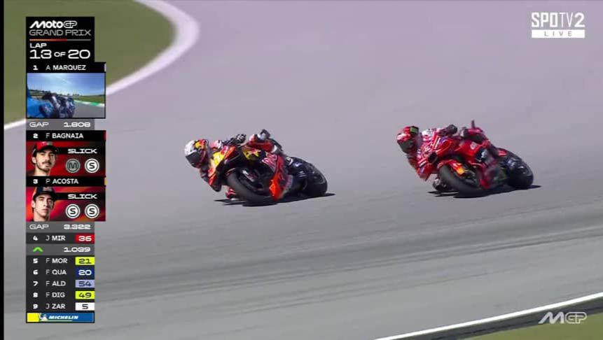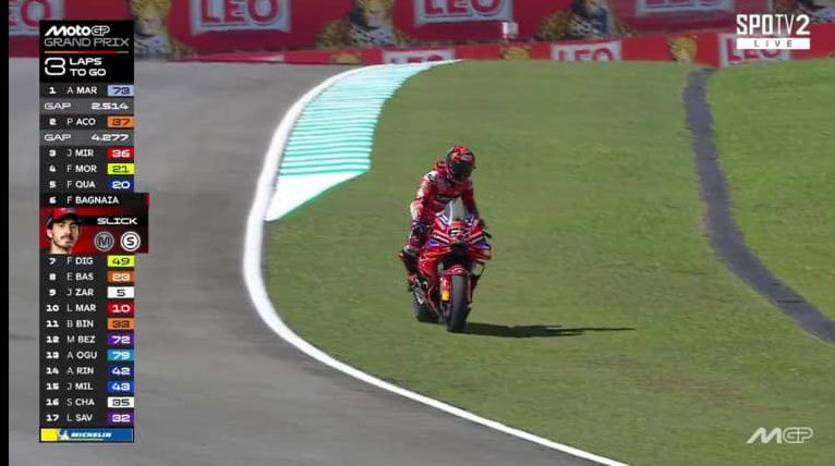 Acosta finally managed to pass Bagnaia at Turn 11, but the Ducati rider soon ran into trouble. With just a few laps remaining, Bagnaia was seen looking down at the rear of his machine before slowing dramatically — a mechanical issue that ended his race and handed Mir a surprise third-place finish.