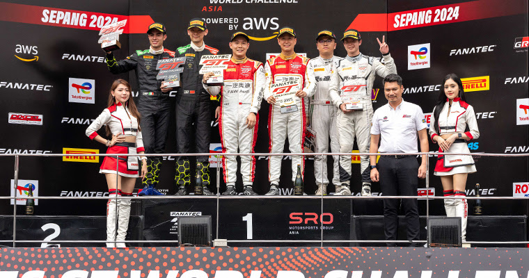 Origine’s other Porsche, which starts Sunday’s race from pole, finished seventh in the hands of Lu Wei and Laurin Heinrich, Jeffrey Lee and Fabian Schiller were eighth in Craft-Bamboo’s Mercedes-AMG, the first of Absolute’s Audis – shared by James Yu and Akash Nandy – was ninth, and home favourite Prince Abu Bakar Ibrahim rounded out the overall points paying positions in 10th with Jordan Love.