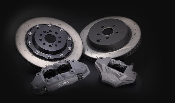 Stopping power comes in the form of monobloc type four-piston (front) and two-piston (rear) Advics brake calipers machined from a single solid piece of advance aluminum for ultimate high-performance braking. Complementing these advance calipers are the two piece design 345 x 30mm front discs and conventional one piece but enlarged 330 x 26mm rear discs.