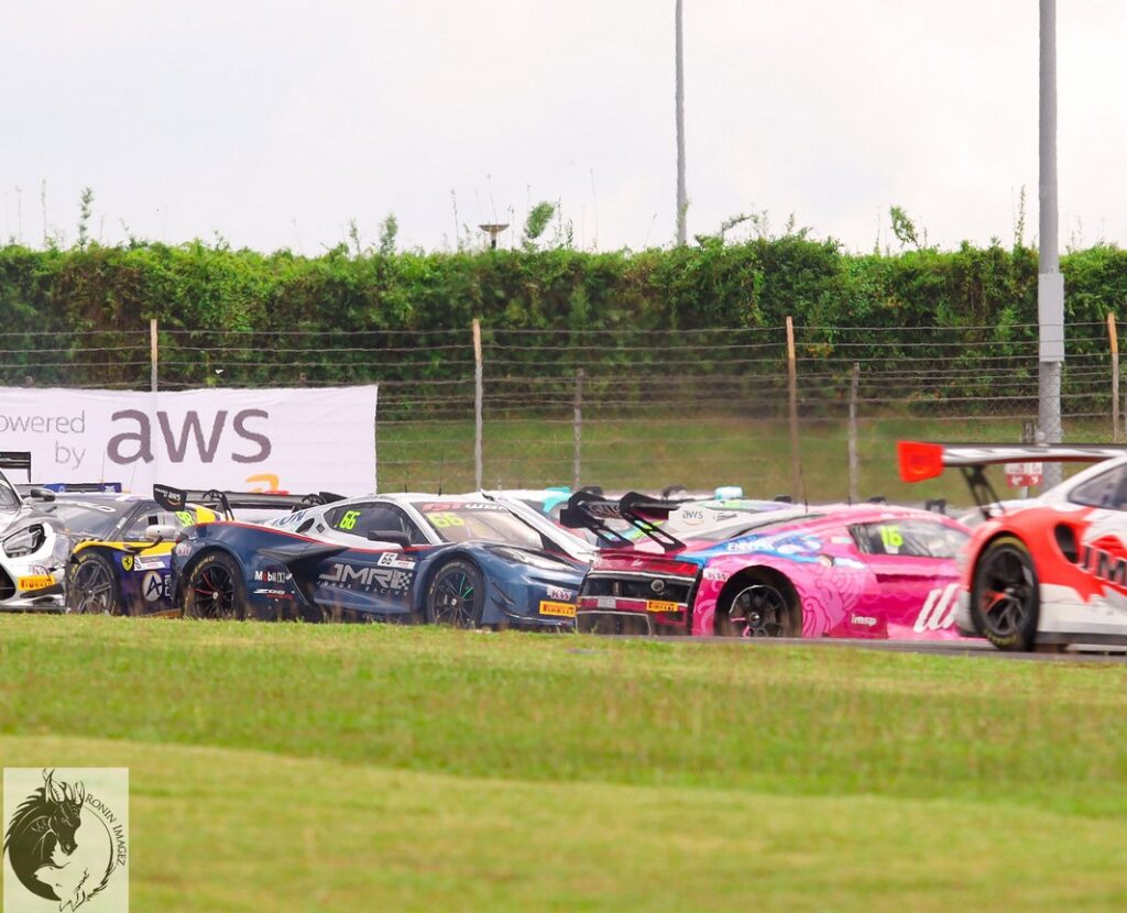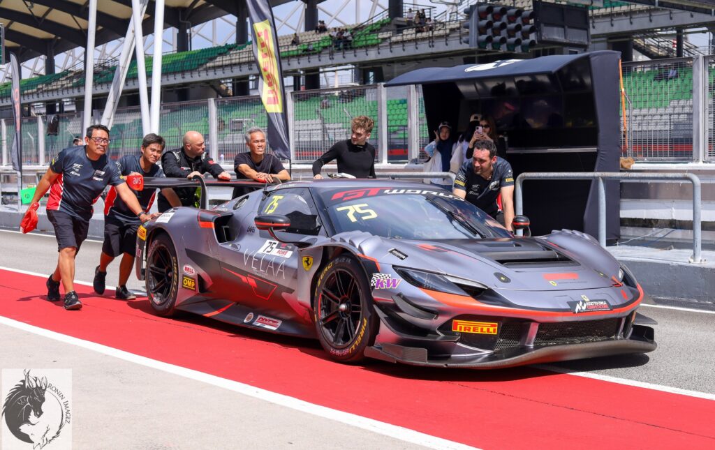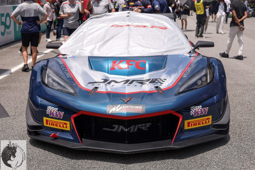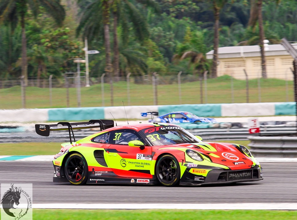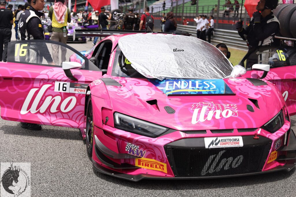 A poor getaway dropped Uno’s R8 from second to fifth before contact sent Thong around at the apex. He was collected side-on by Prince Abu Bakar Ibrahim’s Corvette, which continued to the pits with damage, while Origine’s #86 Porsche and EBM’s 911 lost time in the incident.