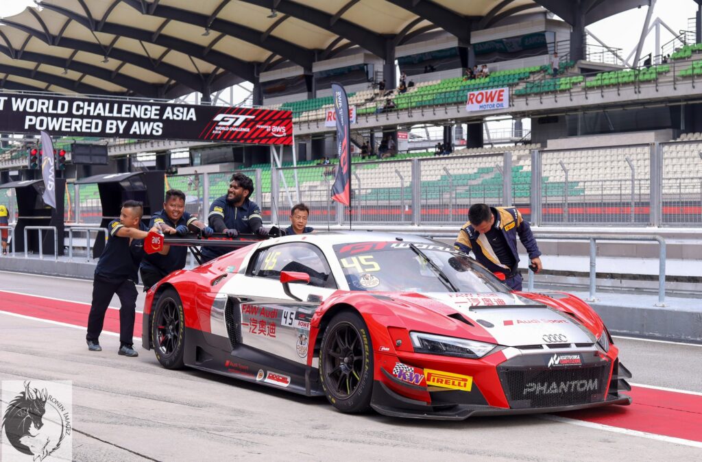 Two Silver Audi crews locked out the front row. But Shaun Thong’s spin at Turn 2, which then triggered contact between several more cars, also ultimately prevented FAW Audi Sport Asia Phantom’s entry from mounting a serious victory bid.