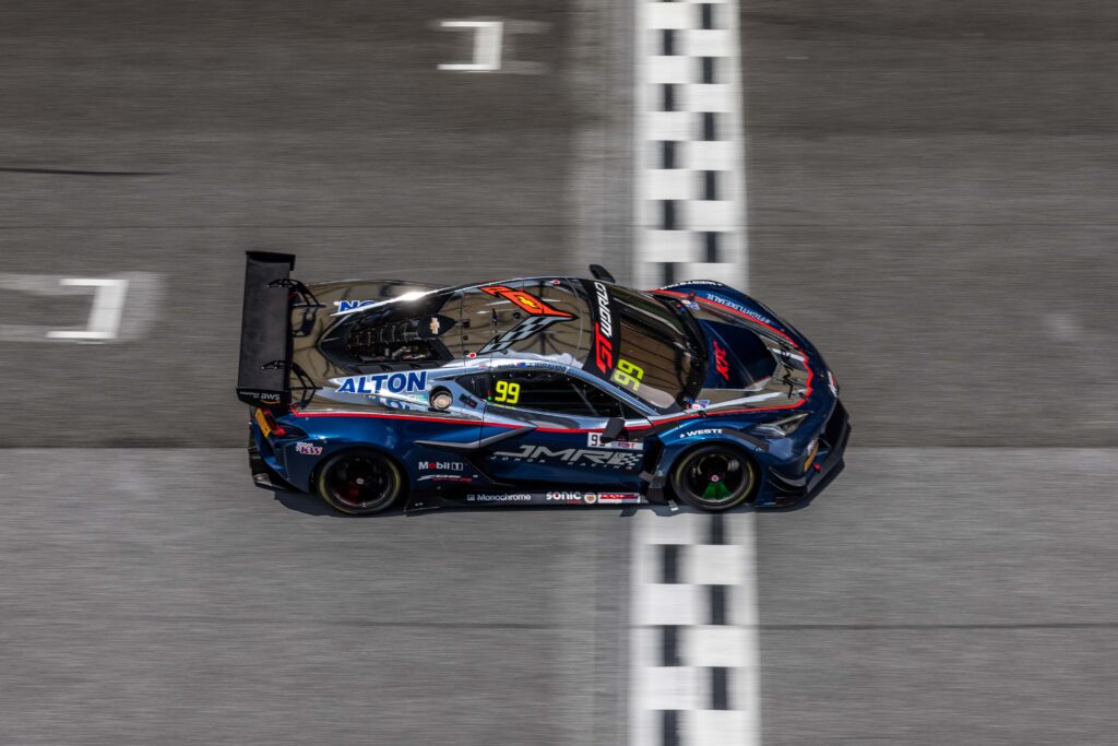 Their cause was aided by a Safety Car period just after the pitstops that bunched the pack and set in motion a sequence of events that led to JMR’s first triumph in only its second outing with the Z06 GT3.R. The team and drivers also now lead their respective championships after finishing fourth yesterday.