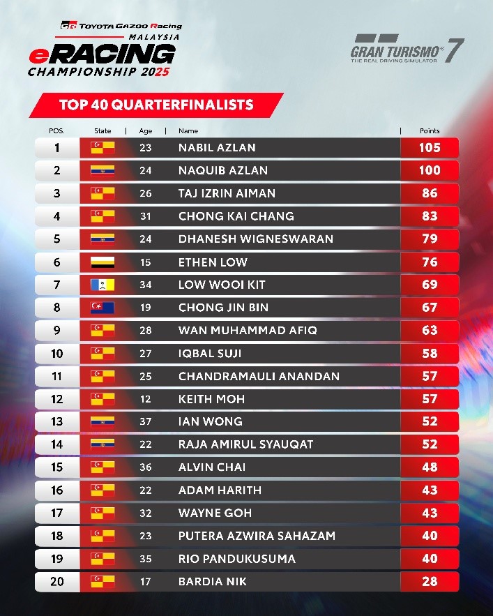 “This initiative is more than just a competition—it’s an immersive introduction to motorsports culture designed to ignite passion and discover untapped talent. It reflects UMW Toyota’s commitment to broadening access to motorsports through digital platforms, creating new pathways for youth, and advancing our Mobility for All vision. By lowering barriers of entry and empowering talent from all walks of life, we are not only building champions but also opening the doors to a more inclusive future of racing,” said Datuk Ravindran K., President of UMW Toyota Motor.