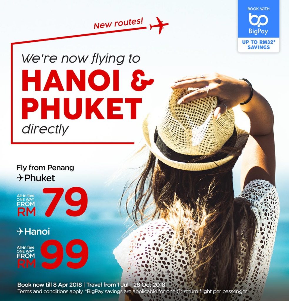 Good news Penangites! AirAsia has recently announce that it will be launching a new direct flight from Penang to Phuket and Penang to Hanoi starting on July 1, 2018 to bring Penangites closer to the gems of Asean.