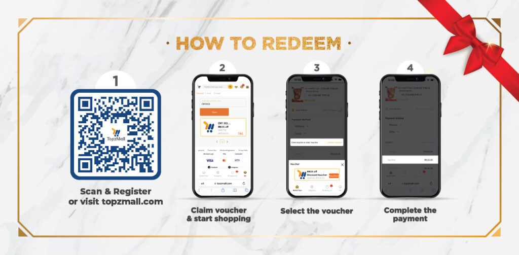 *Purchase any CNY products in TopzMall, to receive additional *RM25 off Discount Voucher for next purchase.